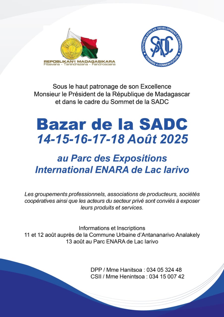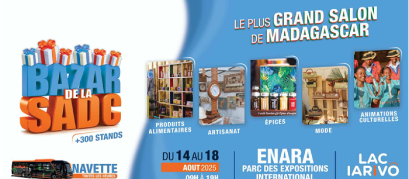 Bazar de la SADC du 14 au 18 aout 2025Au Parc des Expositions International ENARA de Lac IARIVOVenez nombreux